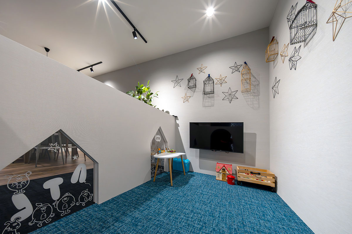おしゃれで居心地の良いカフェスペース。くつろぎの時間を過ごしながら、キッチン周りの設備やオプションをじっくり確認できます。暮らしのイメージを膨らませる、発見の場にもなります。