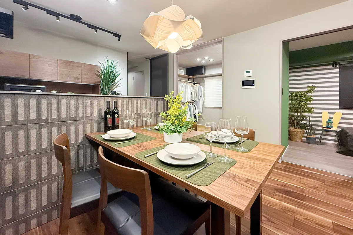 実際の間取りを忠実に再現したモデルルーム。広さを実感できるだけでなく、各部屋で異なる色や素材をセレクトしているので、多彩なコーディネートを体感しながら、イメージを広げられます。
